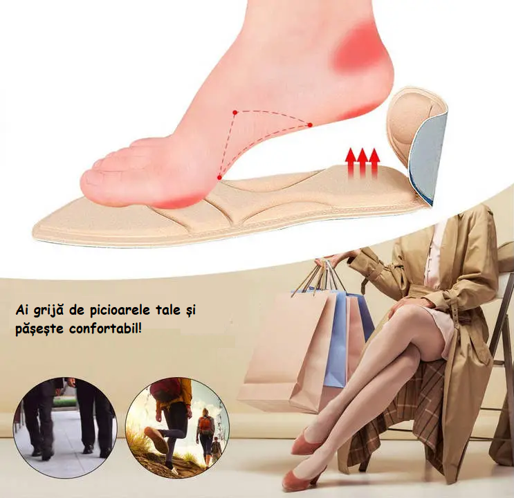 -Talpa ortopedică pentru picioare asigurăfixarea piciorului in incaltaminte, confort si suport pentru arcadă . Aceasta facilitează mișcarea naturală a piciorului pentru absorbția șocurilor și ameliorarea durerii.